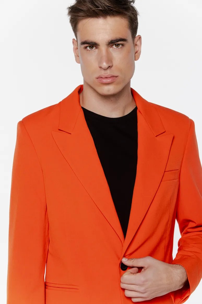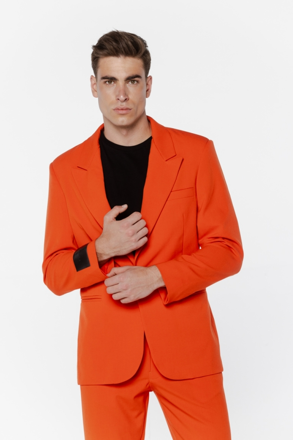 Pomarańczowa marynarka to propozycja dla mężczyzn, którzy nie boją się wyróżniać i cenią odważny styl.