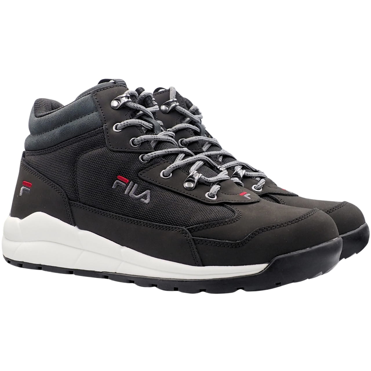 Buty męskie Fila to sportowe buty outdoorowe. Wydłużona cholewka łącząca różne materiały. Przeplatanie sznurówek przez metalowe oczka zadba o naturalne dopasowanie obuwia. Dodatkowe wzmocnienia. Wnętrze butów z materiału. Podeszwa środkowa z pianki EVA amortyzujące wstrząsy w trakcie poruszania. Uchwyt na języku. Zewnętrzna, gumowana warstwa podeszwy z antypoślizgowym bieżnikiem.