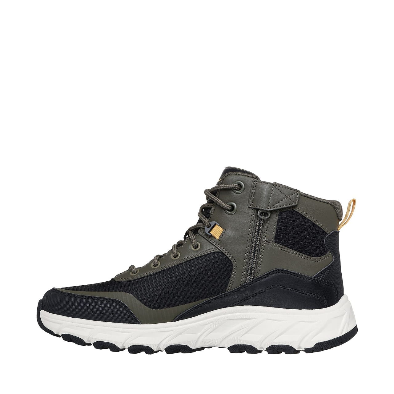 Buty Skechers łączące dopracowane elementy w wytrzymałej konstrukcji będą wiernym towarzyszem dbającym o zachowanie długotrwałego komfortu podczas spacerów po leśnej ścieżce, miejskim trakcie czy górskim szlaku. Wydłużona cholewka łączący skórę ekologiczną i materiały tekstylne. Technologia Water Repellent w znacznym stopniu ogranicza wchłanianie wilgoci, ułatwia utrzymanie w czystości oraz minimalizuje ryzyko zabrudzenia materiału. Wkładka z pianki Memory Foam ugina się pod wpływem ciężaru i ciepła stóp, co przekłada się na anatomiczne dopasowanie do ich kształtu. Praktyczny uchwyt z tyłu. Zewnętrzna, gumowana warstwa podeszwy z antypoślizgowym bieżnikiem.