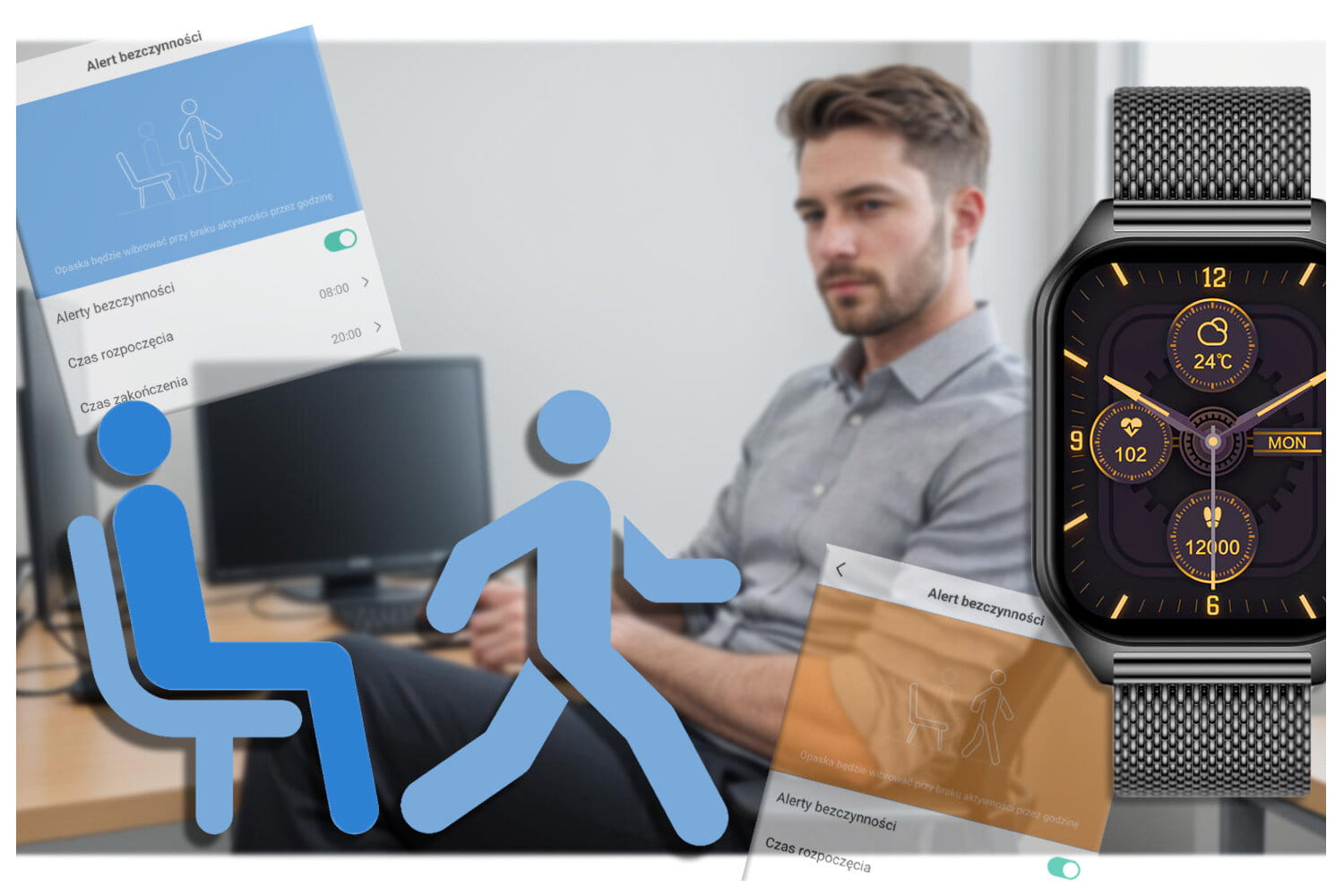 - przypomnienie o wypiciu wody, ruchu