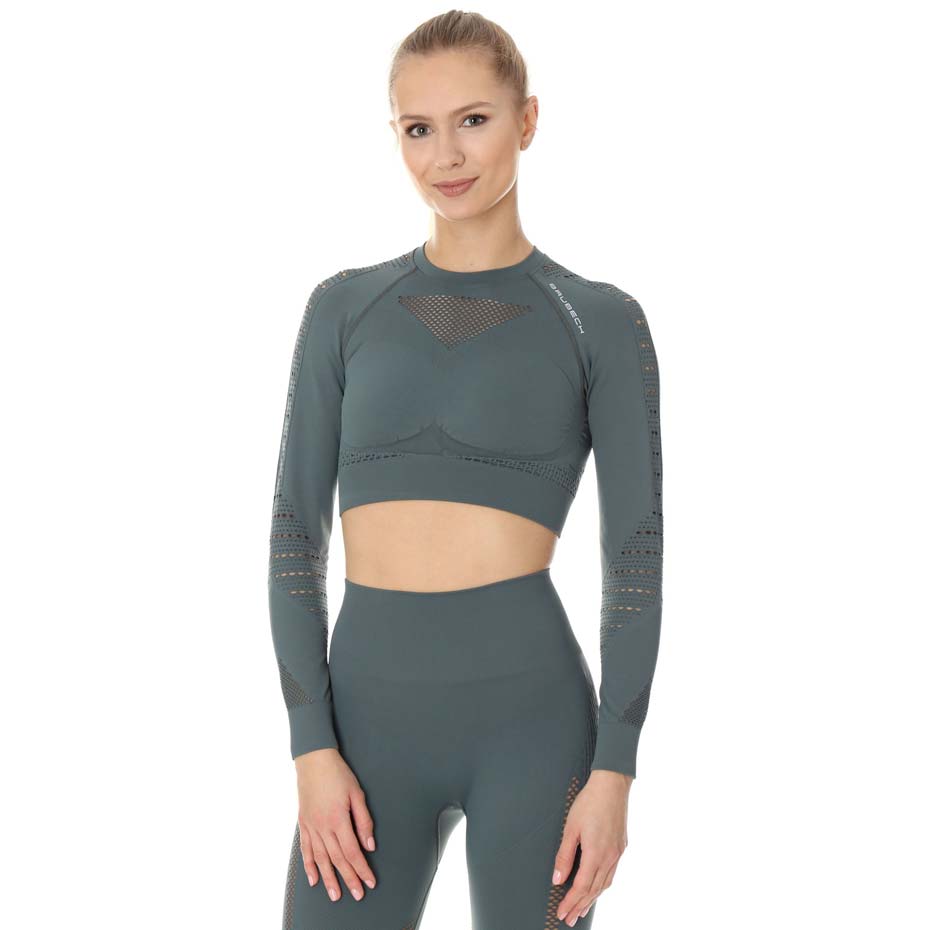 Damski top Brubeck sprawdzi się podczas treningu. Należy do linii GYM. Bezszwowa kontrukcja. W strefach wzmożonej potliwości umieszczone są specjalne strefy wspomagające wentylację. Top został wykonany z nieprzejrzystego materiału. Top sprawdzi się na siłowni, w czasie treningu biegowego, czy też w trakcie jogi.