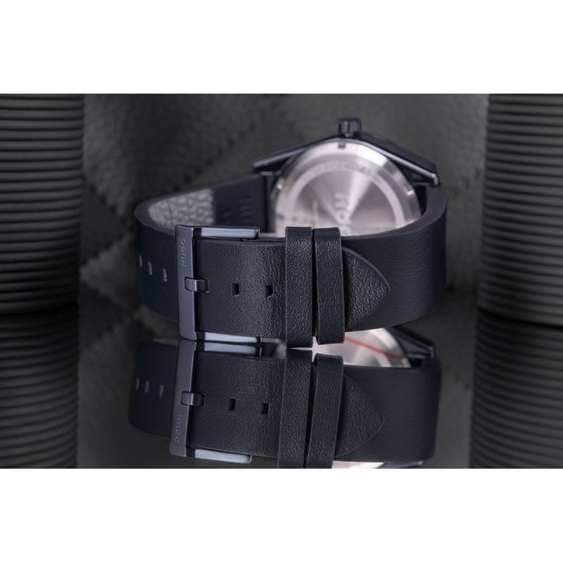 Hugo Bright to więcej niż zegarek. To wyraz Twojej klasy, pewności siebie i gotowości, by zawsze wyglądać najlepiej. Bo prawdziwy mężczyzna nie potrzebuje wiele – wystarczy mu doskonały czasomierz, który mówi wszystko za niego.Matowy, granatowy odcień koperty perfekcyjnie współgra z satynową tarczą, tworząc harmonijną, ale męską całość. Indeksy i wskazówki są minimalistyczne, ale wystarczająco wyraziste, by od razu przyciągnąć wzrok. Całość jest subtelna ale z pazurem – idealny dla mężczyzny, który ceni sobie styl bez przesadnych ozdobników. To model, który pasuje do wszystkiego – od garnituru, przez smart casual, aż po codzienne zestawienia.