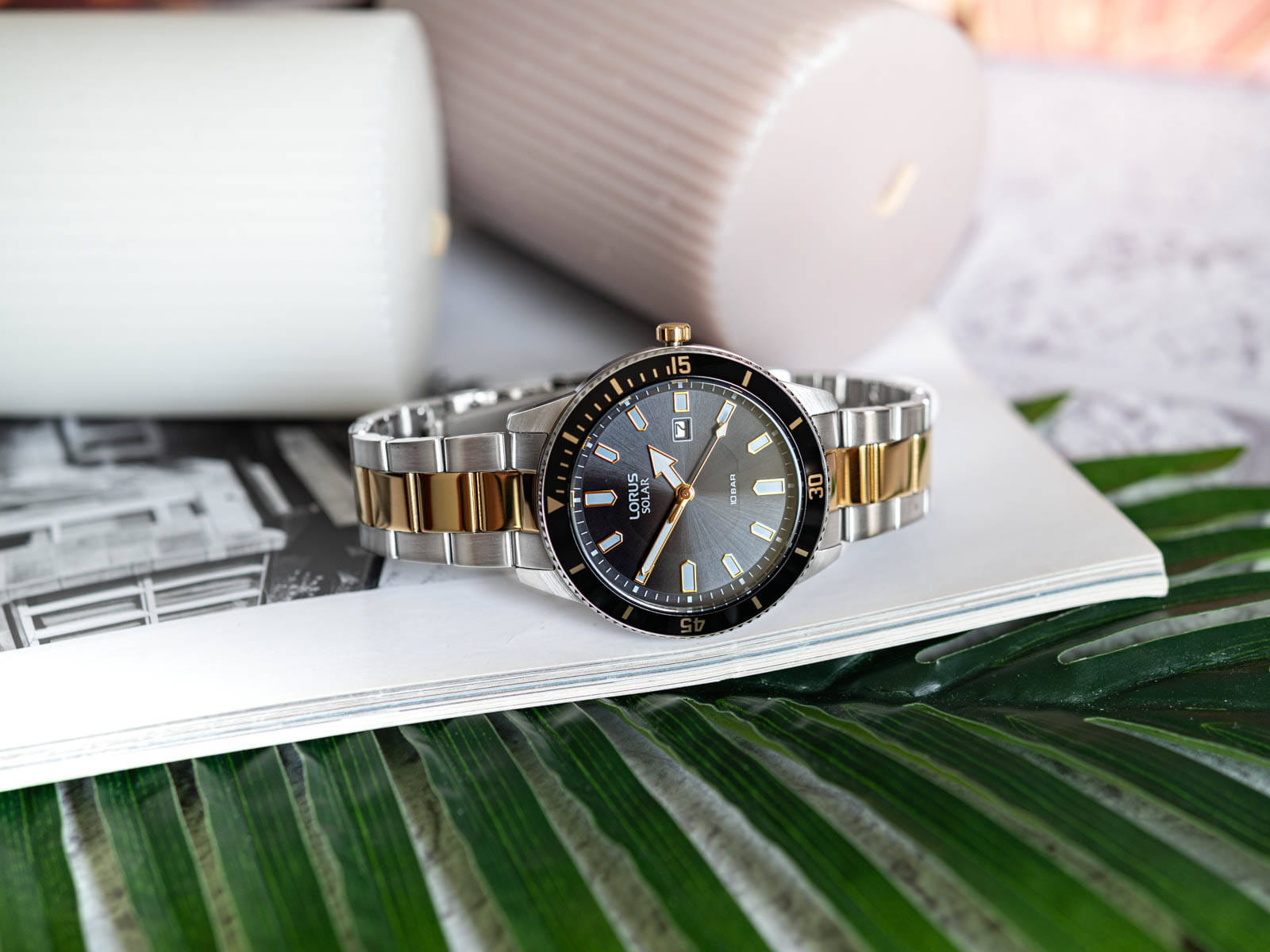 Zegarek męski Lorus Solar RX327AX9 to wyraz elegancji i funkcjonalności w jednym. Wykonany na stalowej bransolecie w kolorze srebrnym i. złotym, ten zegarek nie tylko dodaje wyrafinowanego charakteru, ale także doskonale komponuje się z różnorodnymi stylizacjami. Jego czarna tarcza nadaje zegarkowi unikalnego uroku. Czytelny design tarczy ułatwia odczytywanie czasu, a dodatkowy datownik zwiększa funkcjonalność zegarka, umożliwiając śledzenie bieżącej daty. Zegarek Lorus Solar RX327AX9 to nie tylko stylowy dodatek, ale także praktyczne narzędzie codziennego użytku. Posiada mechanizm solarny oraz wodoszczelność W100, co oznacza, że jest odporny na zanurzenia i pozwala to na bezpieczne noszenie go w różnych sytuacjach. Dla mężczyzny, który ceni sobie połączenie elegancji, funkcjonalności i trwałości, Lorus Solar RX327AX9 stanowi idealny wybór. Ten zegarek doskonale sprawdzi się zarówno w codziennych sytuacjach, jak i podczas bardziej formalnych okazji, podkreślając indywidualny styl noszącego go mężczyzny.