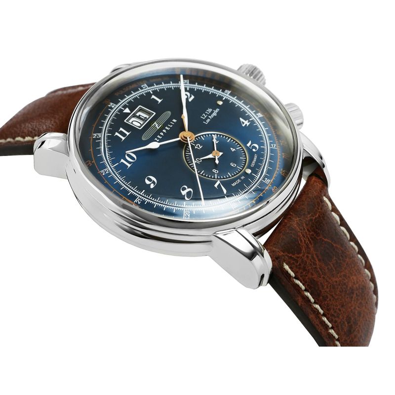 Model Zeppelin 8644-3 z kolekcji LZ126 Los Angeles to hołd dla inżynieryjnego kunsztu i odwagi pionierów lotnictwa. Seria ta nawiązuje do legendarnego sterowca, który w 1924 roku pokonał trasę z Niemiec do USA, stając się symbolem luksusu i technologicznego triumfu. Zegarek ten przenosi tamtą atmosferę na nadgarstek współczesnego mężczyzny, oferując funkcje przydatne w dalekich podróżach.
